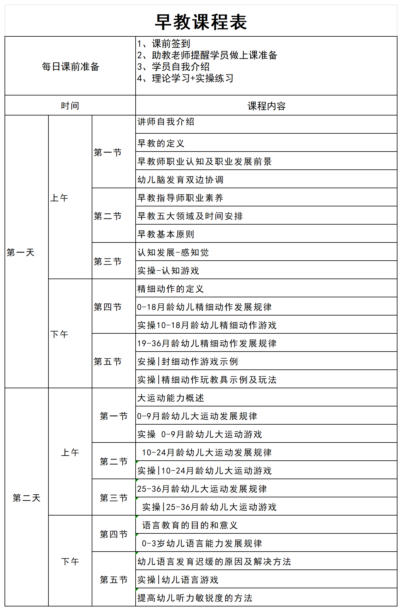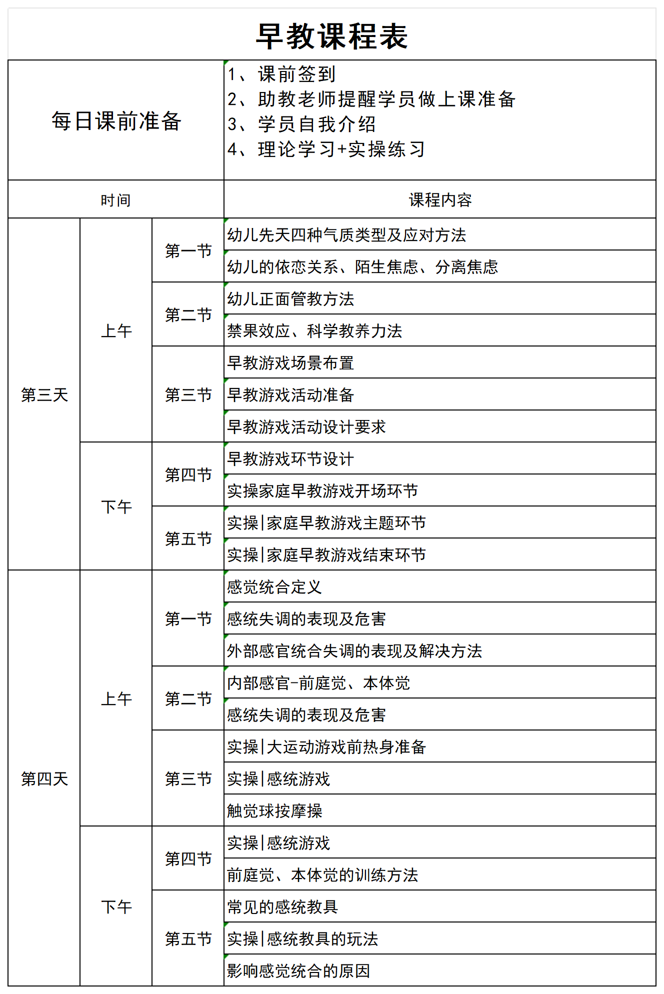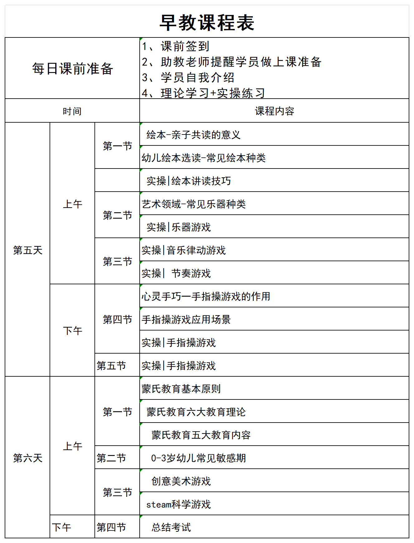 高级早教课程表